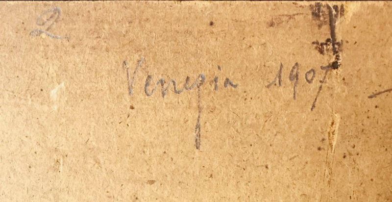 Olio su cartone, in cornice. Collocato e datato a matita sul retro. Misure del dipinto: cm 11,8 x 18, 5