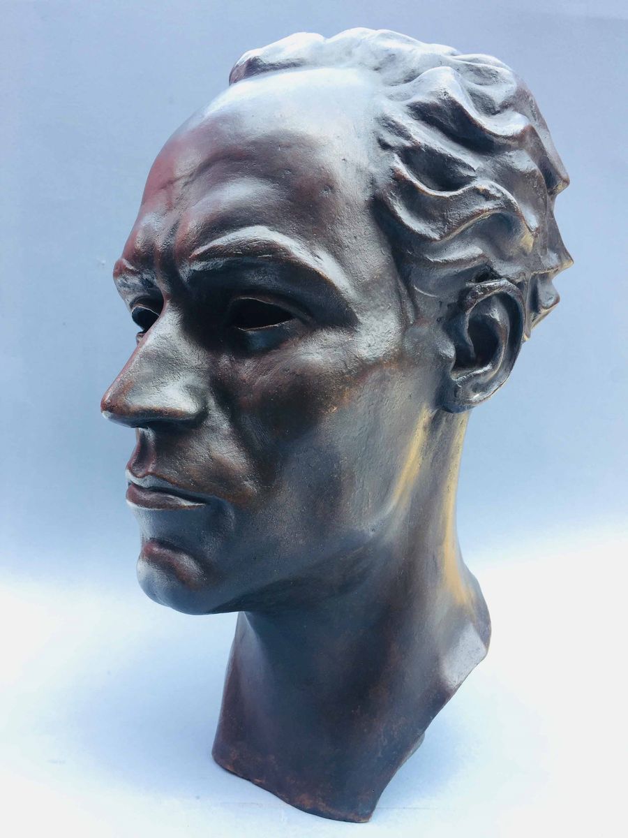 Testa maschile in bronzo realizzata a cera perduta Misure. altezza cm 36,5, larghezza cm 19