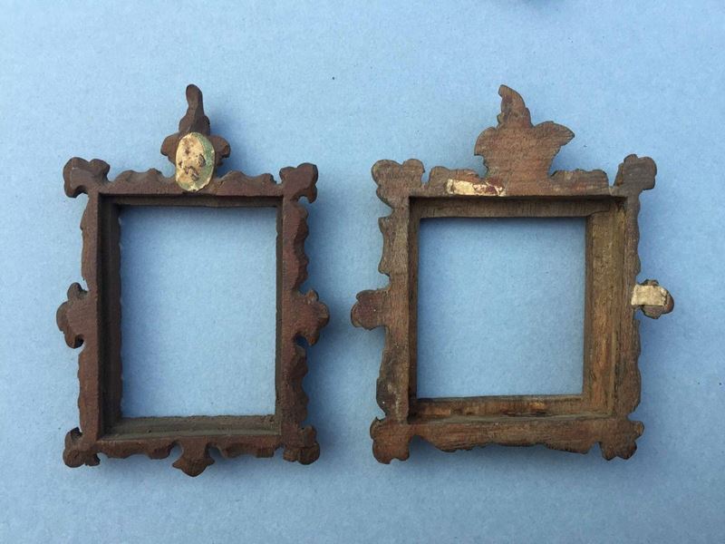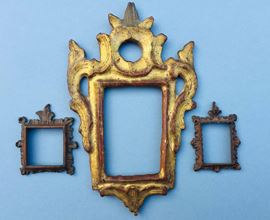 La più grande dorata del XVIII° secolo, le altre due anch'esse antiche. Misure della più grande cm 22,5, larghezza cm 14, luce: cm 6 x 9,3; Misure delle piccole: cm 5x 7,5 e cm 6,3 x 7,4