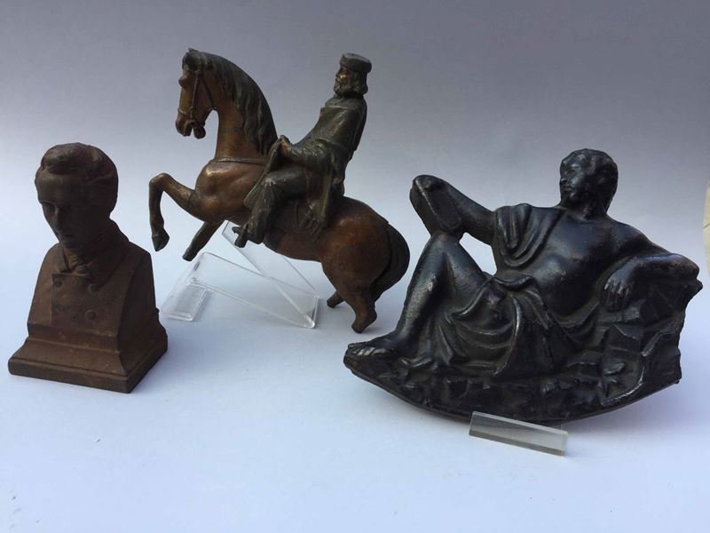 Tre sculture in metalli diversi