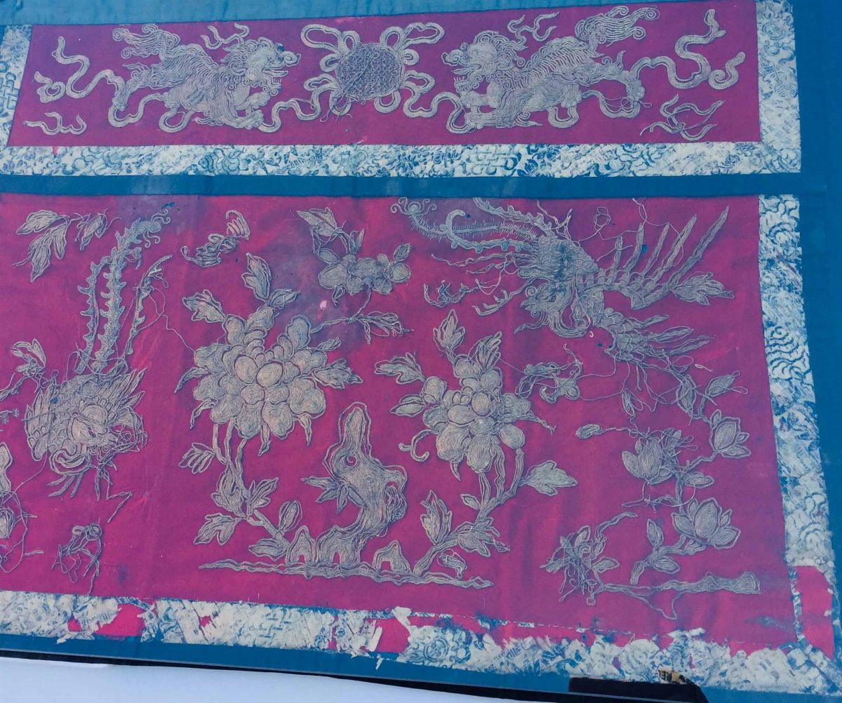 Vecchio ricamo cinese realizzato a filo d'oro