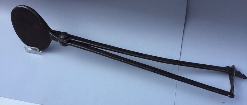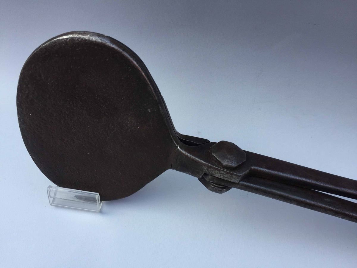 matrici incise con motivi cristologici. Un gancio posto sull’estremità permette di controllarne la pressione. Lunghezza cm 73