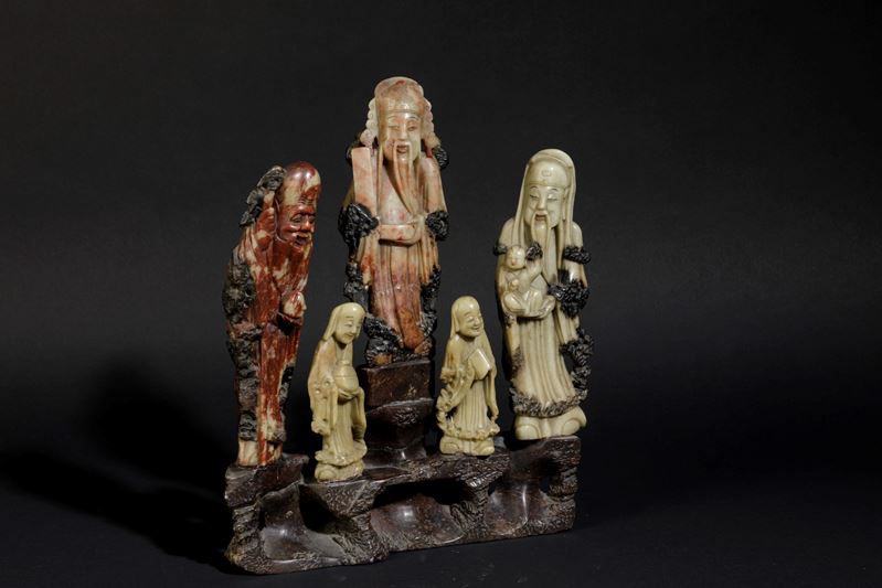 A soapstone group, China, 1900s