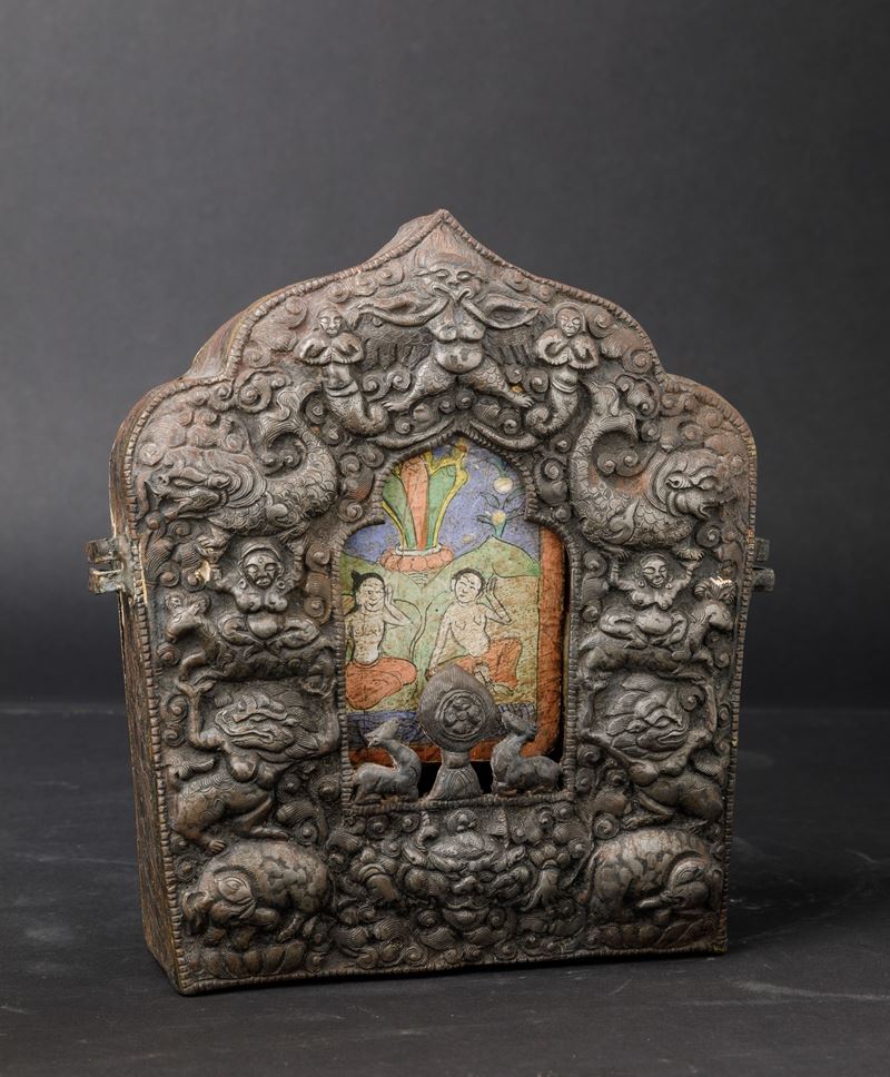 Altare da viaggio in bronzo sbalzato, Tibet, XVIII secolo