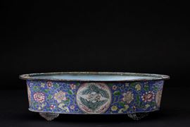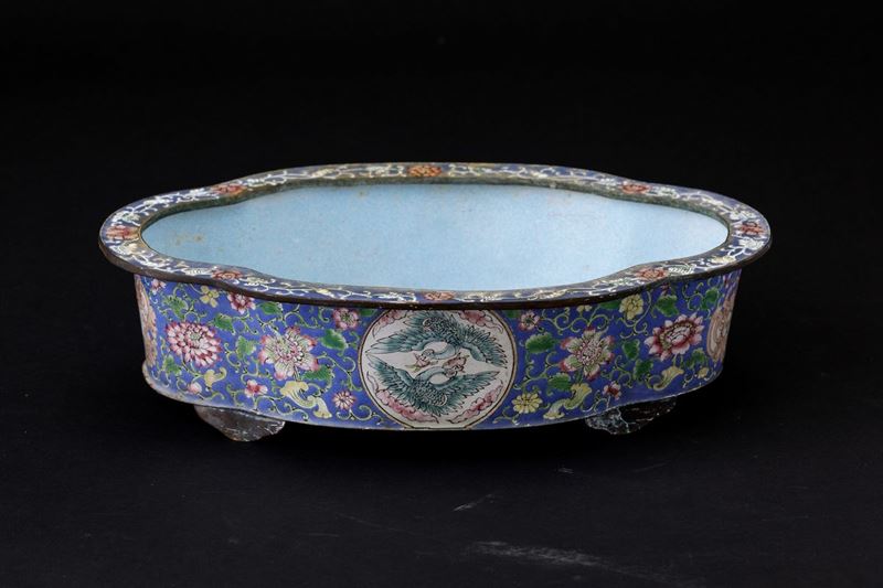 Piccola giardiniera a smalti con decori floreali e figure di fenici entro riserve, Cina, Dinastia Qing, XIX secolo