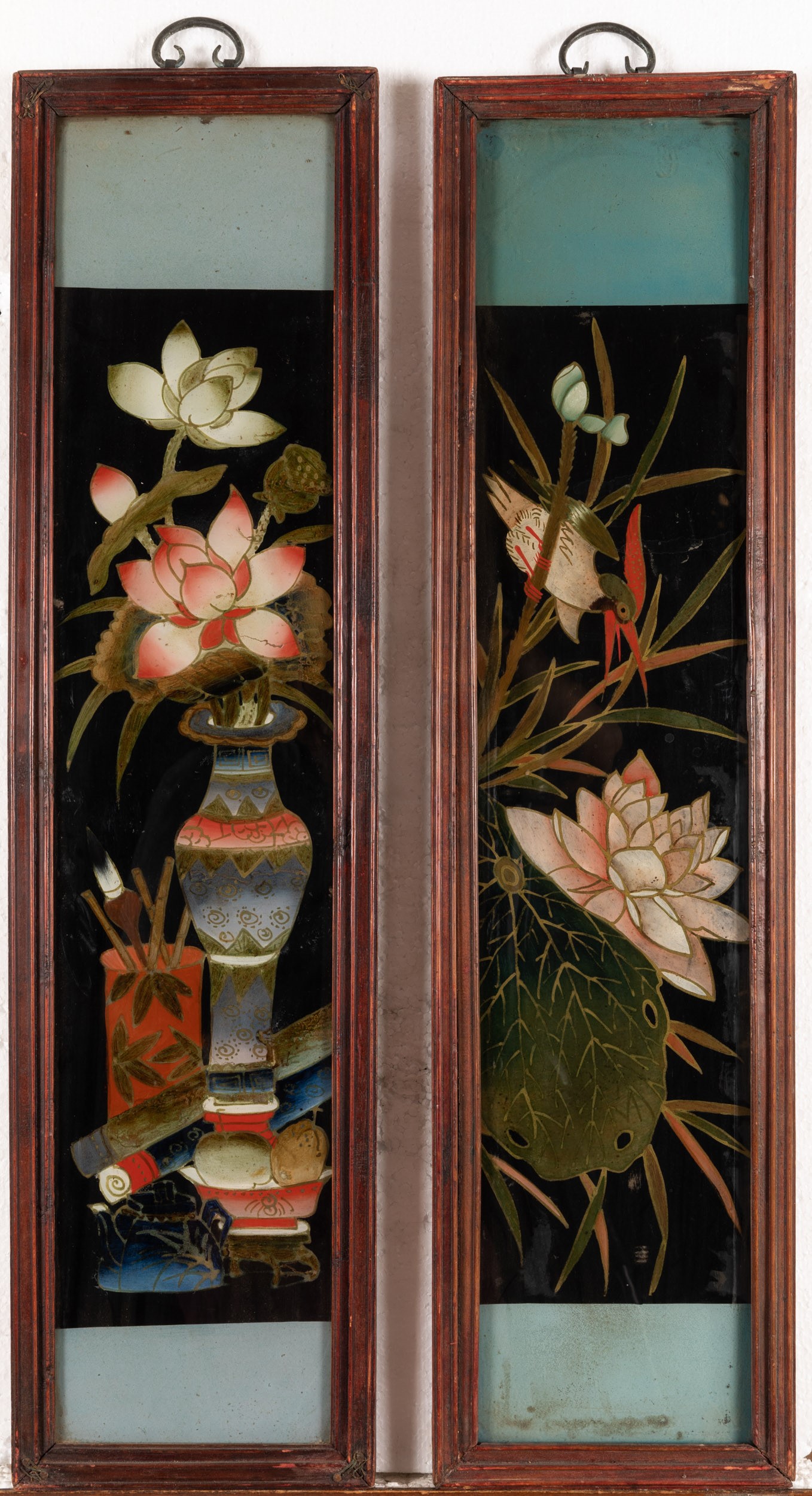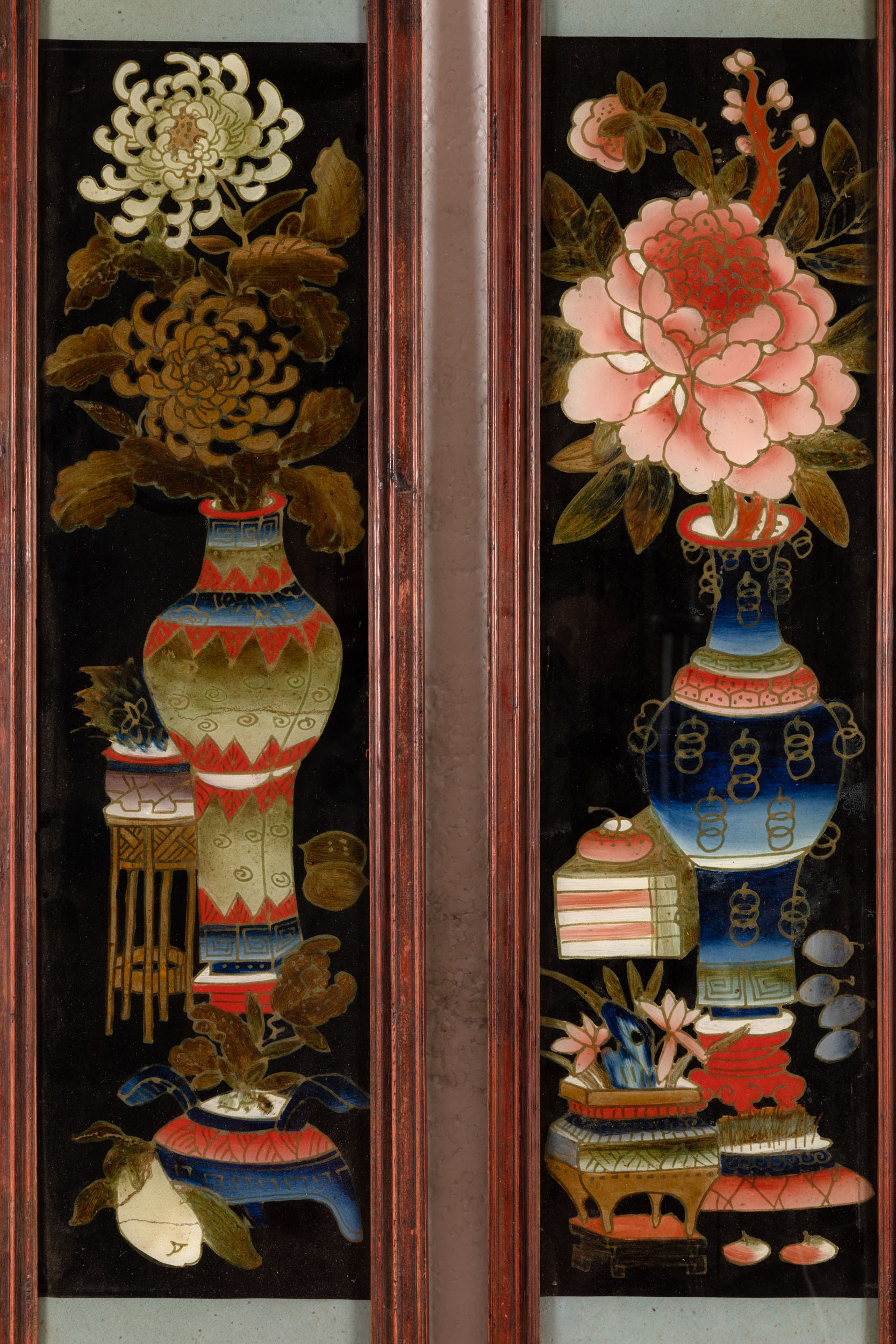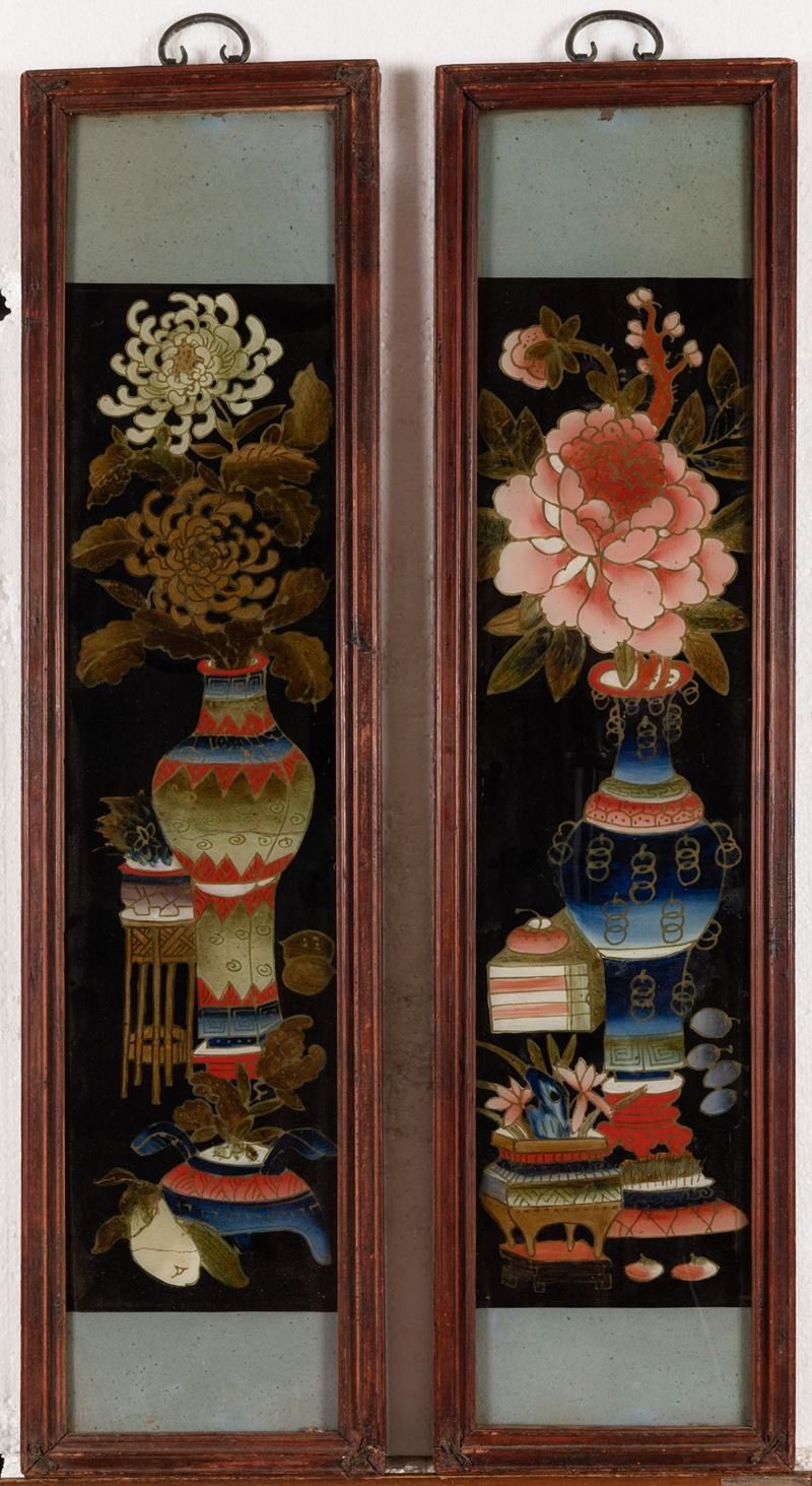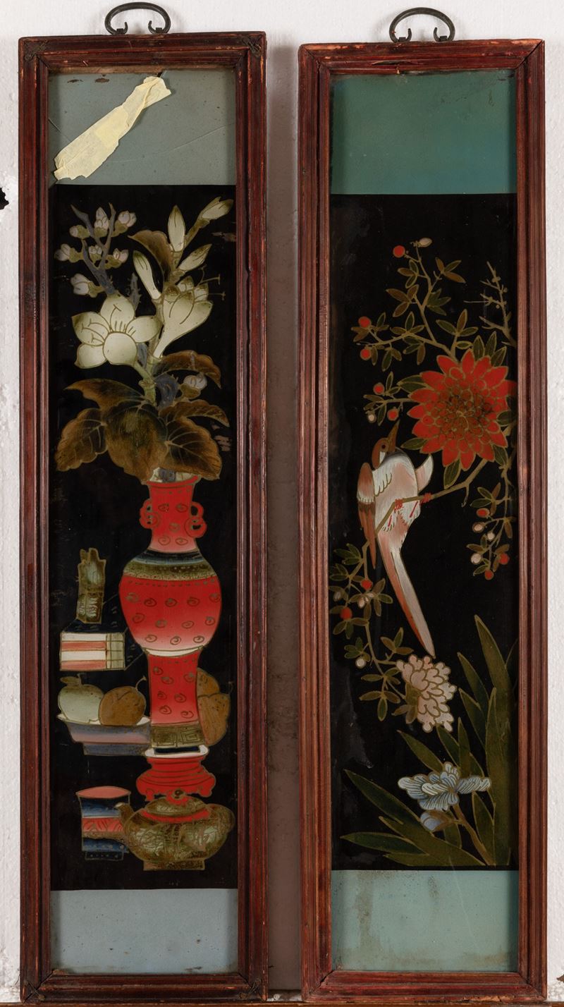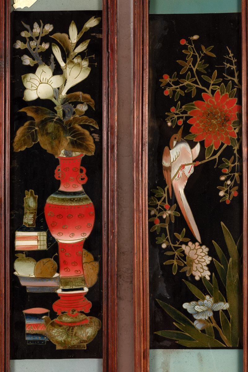 Sei dipinti su vetro a soggetto naturalistici, Cina, XX secolo