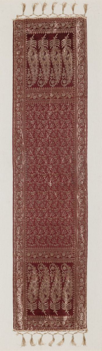 Tessuto i seta e fili dorati con decori vegetali, Persia, XIX secolo