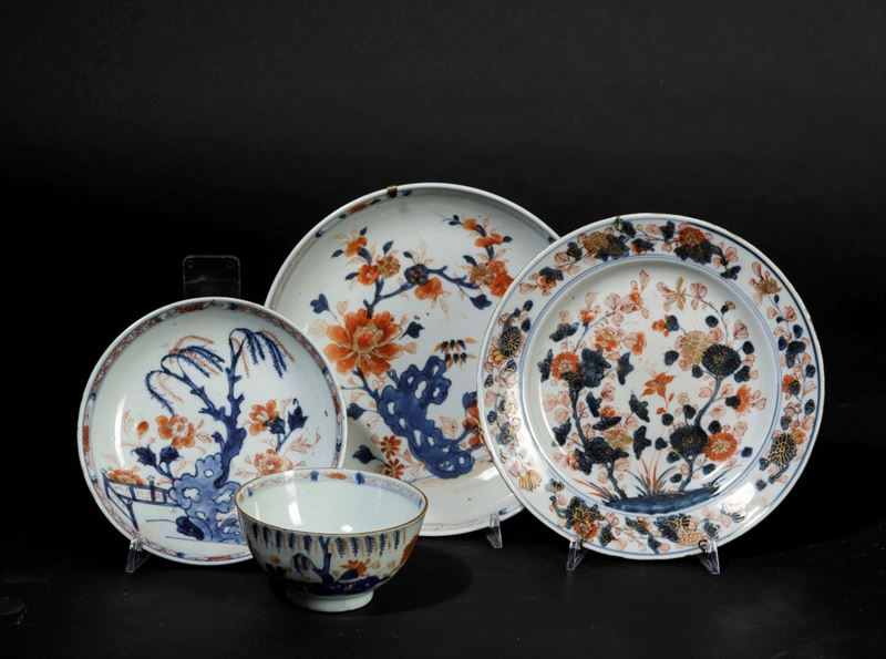 Qianlong period (1736-1796). Imari porcelain. Plates: diameters from 16.5cm to 22cm; bowl: 6x11.5cm