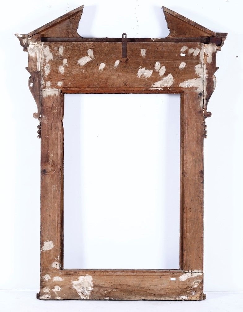 Cornice ad edicola in legno ebanizzato con profili dorati a mecca. Italia centrale XVI-XVII secolo