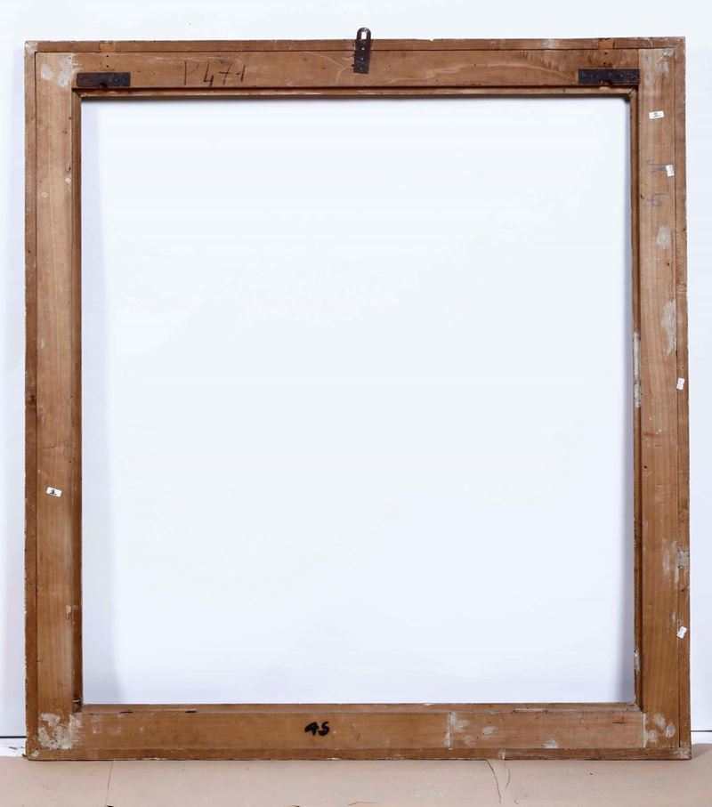 Cornice di sagoma Salvator Rosa in legno dipinto a finta tartaruga e argentato a mecca. Italia centrale XVIII secolo