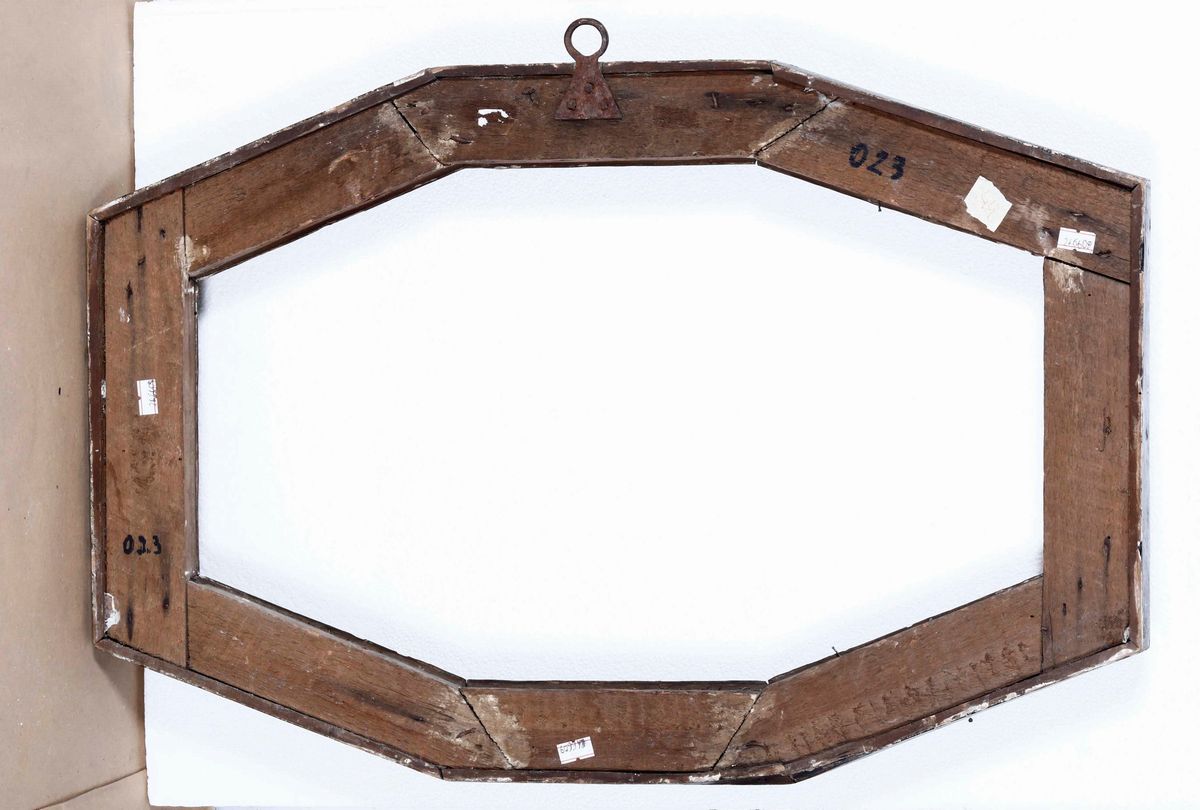 Cornice ottagonale in legno ebanizzato e dorato. Italia centrale XVII secolo