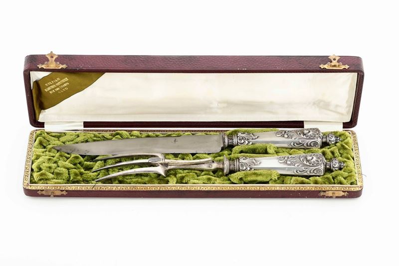 Coppia di posate in argento. In astuccio di Auguste Hulpiau, Francia 1846-1899