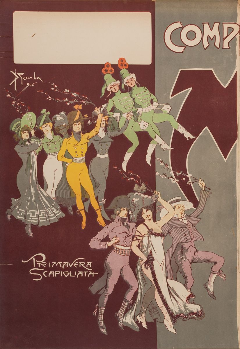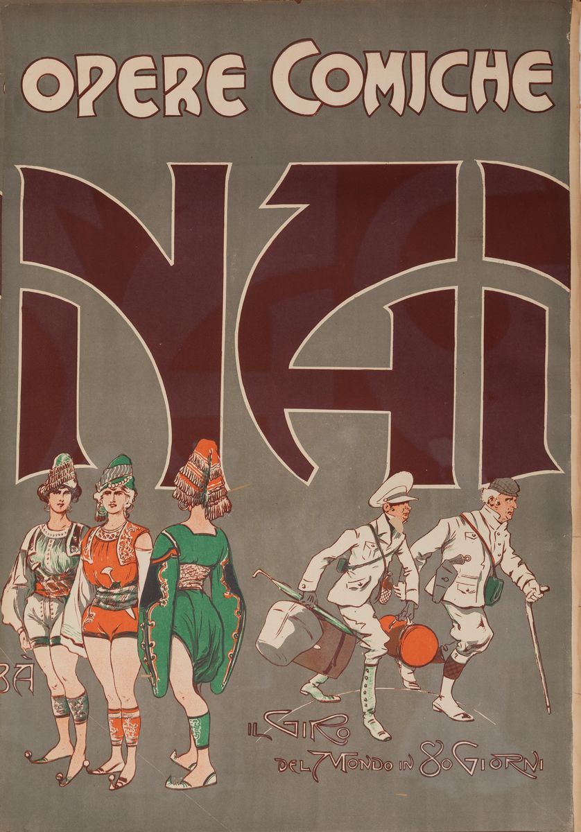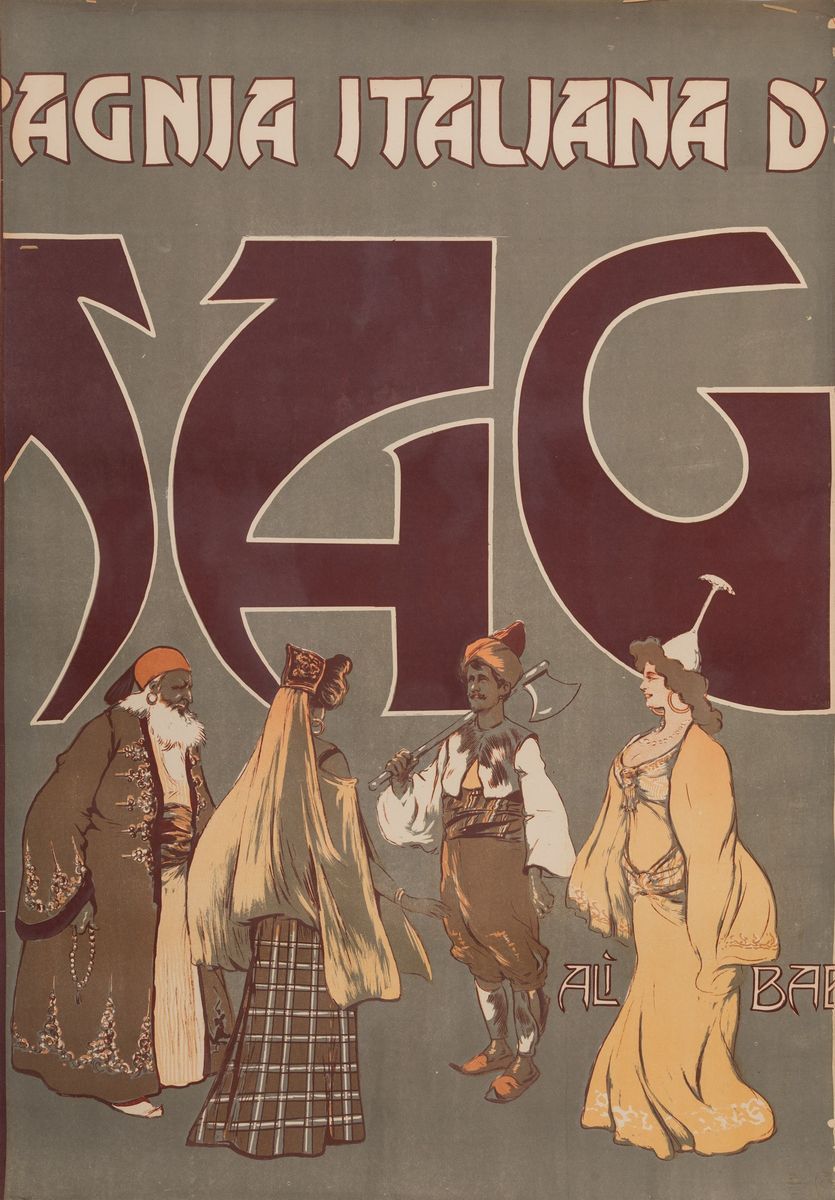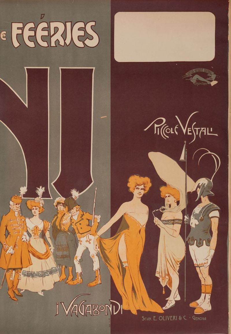 A lithographic poster in four sheets, signed and dated 1906. Printed by Olivieri, Genoa. Total 100x280cm. QUALITY: A.