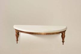 Tre mensole in marmo bianco (1 rotta) e supporti in ferro