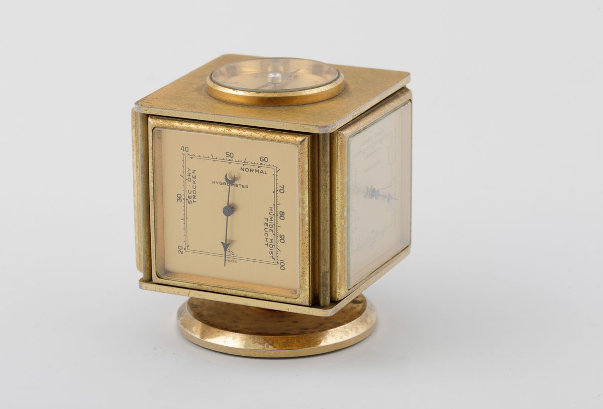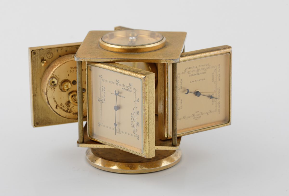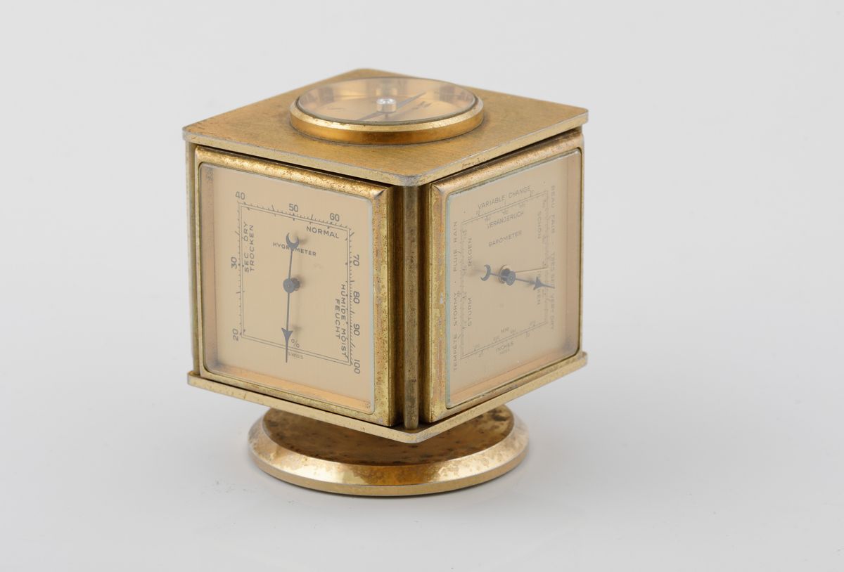 IMHOF - Pendola da tavolo con stazione meteorologica a 8 giorni di carica con sveglia, indicazioni di barometro, termometro, igrometro e bussola.