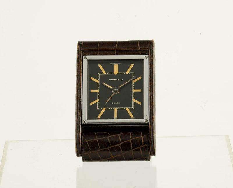 JAEGER LECOULTRE - Sveglietta da viaggio in acciaio 8 giorni di carica con rivestimento in pelle anni '60