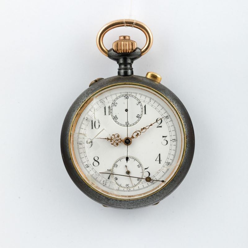 Lotto di due orologi da tasca non funzionanti uno d'oro 18k ripetizione minuti e uno in acciaio