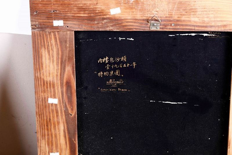 dipinto raffigurante personaggi orientali, tecnica mista in cornice
