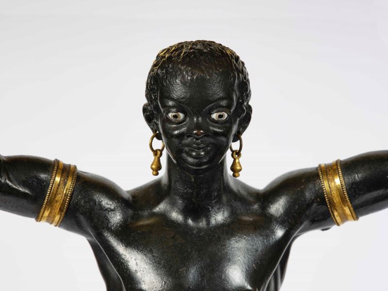 Importante coppia di candelabri in bronzo dorato e patinato "au bon sauvage". Manifattura di Luigi Manfredini (Bologna 1771, [..]