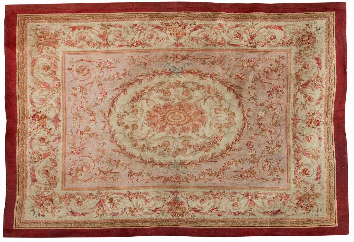 medaglione centrale con ghirlande di fiori,nella bordura vasi e foglie di acanto