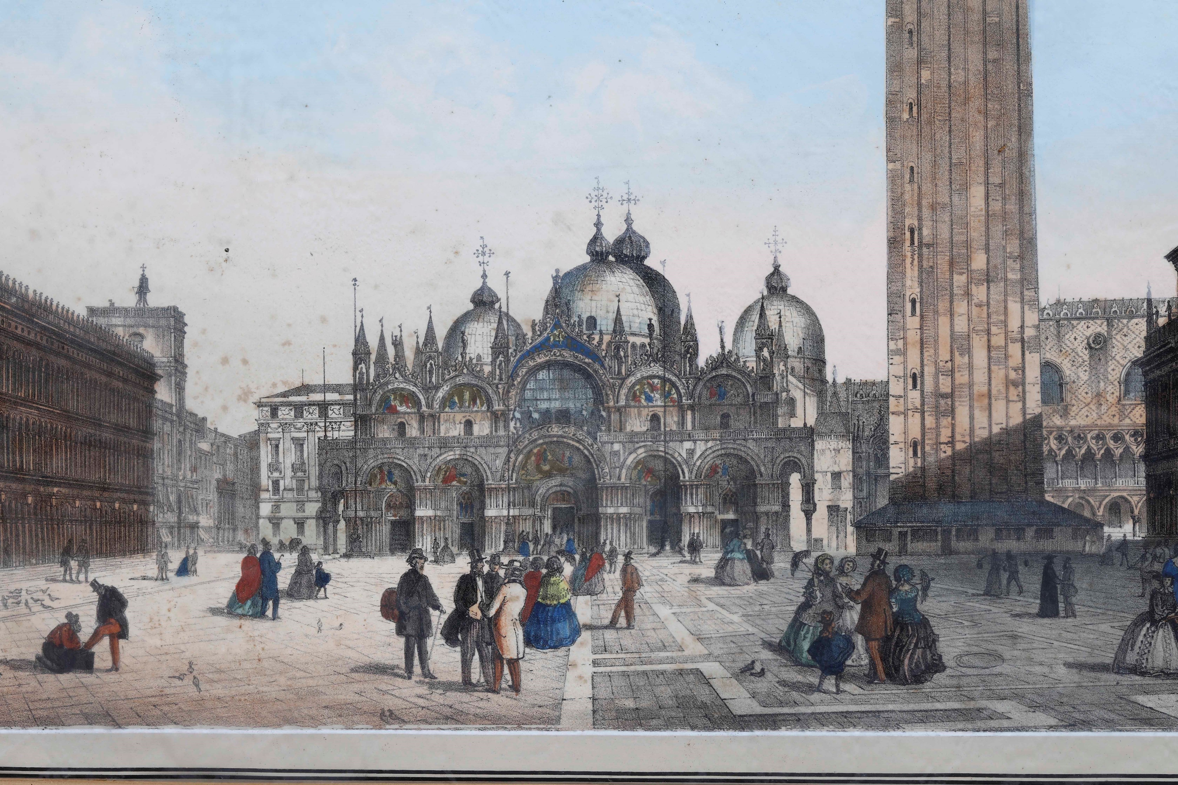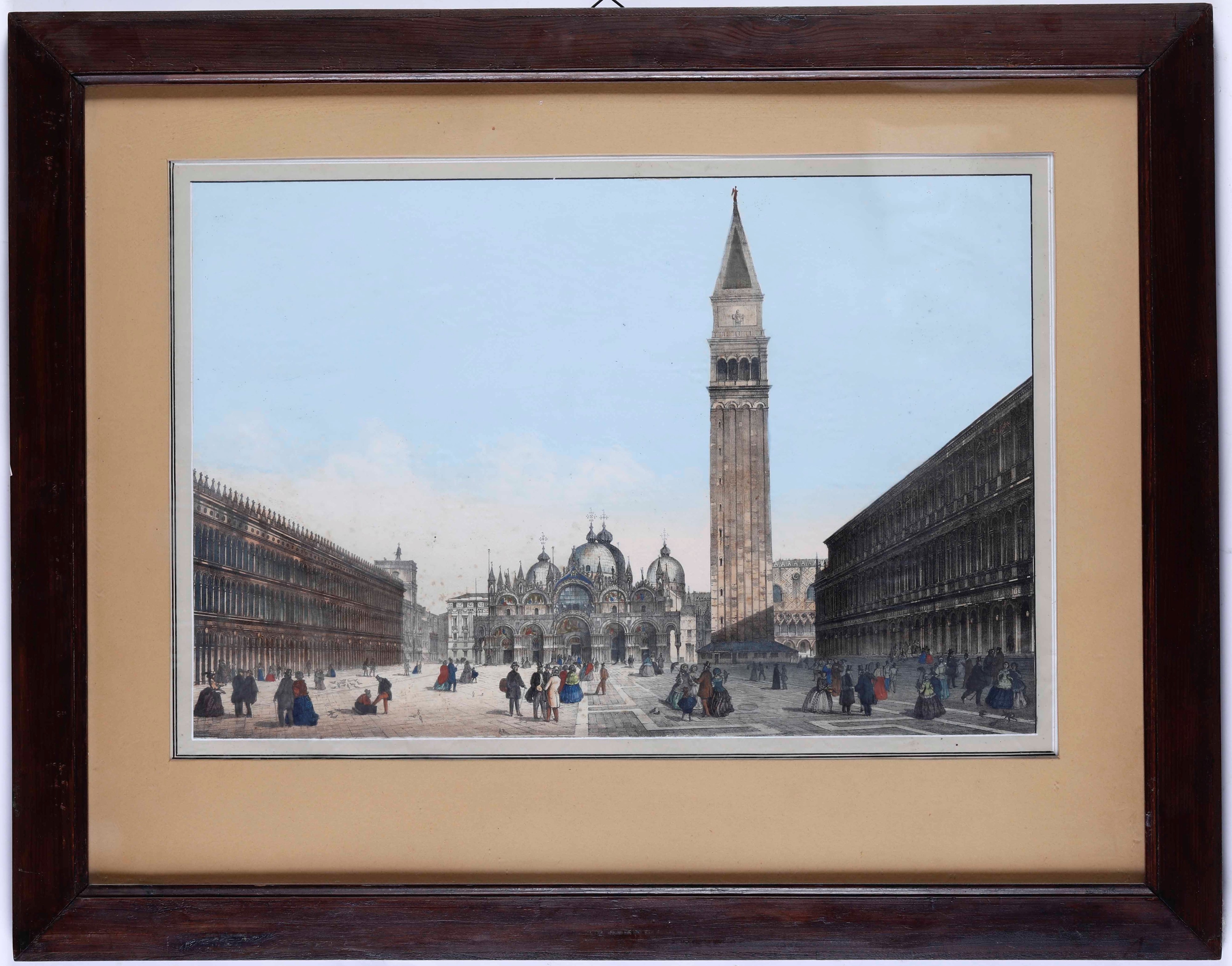 Grande litografia a colori raffigurante piazza San Marco. Entro cornice cm 37x56 Venezia