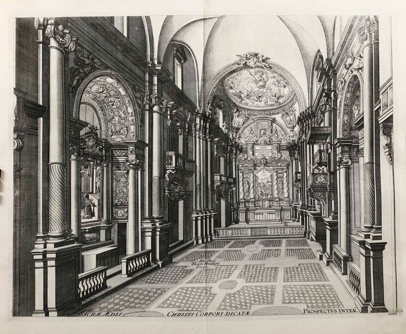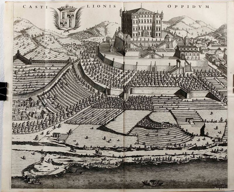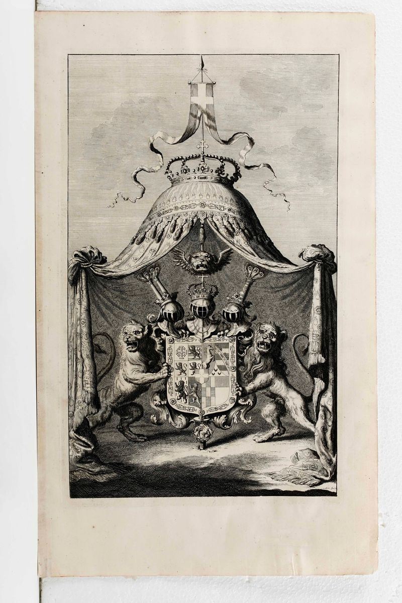 Le tavole indicate nell'indice sono 140. Il ns. esemplare ne contiene tre in più e precisamente: grande "stemma sabaudo" (tomo I, p. I) - "Camaldulensium nondum omnino absoluta ad Lancei oppidum eremus" (tav. XLI a doppia p.) con testo descrittivo (2 p.) intitolato "Ermitage" (tomo I, p.II) - tavola celebrativa dedicata a "Carolus Emanuel II, Sabaudiae Dux, Pedem. Princ. Cypri Rex..., Anno 1670", con grande stemma (tomo II,p.I).