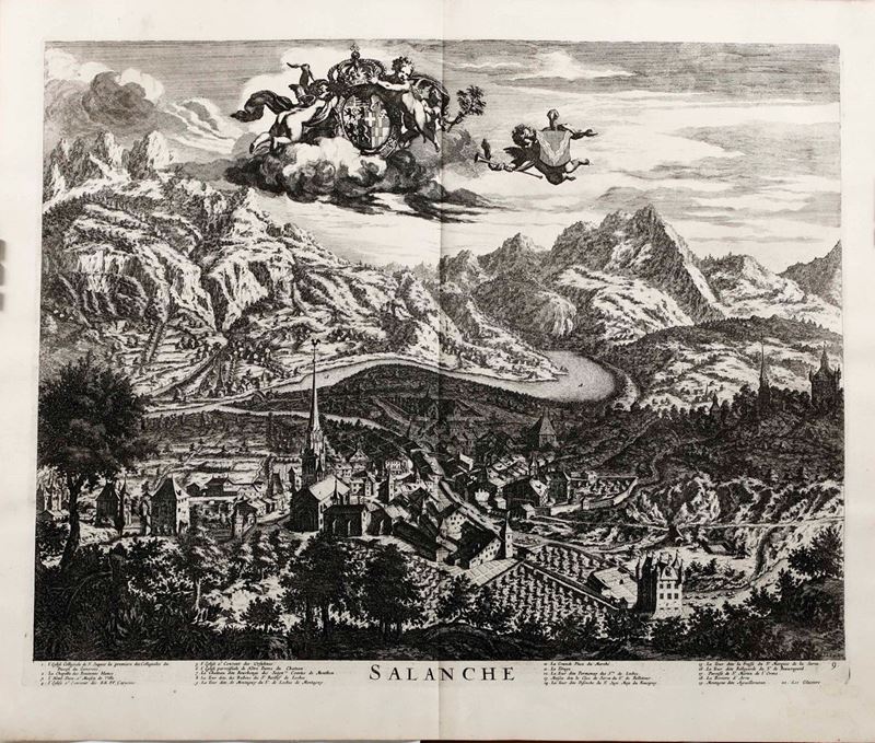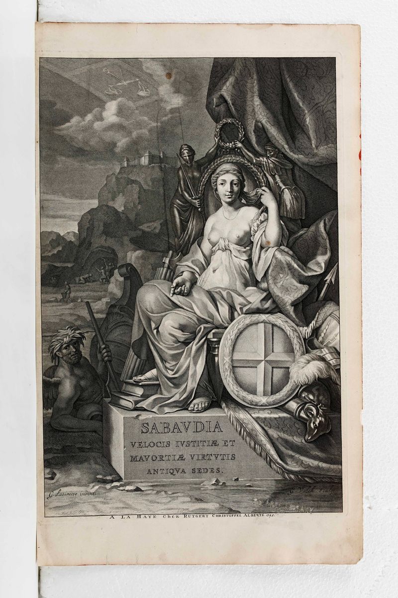 - (Tomo II) p. I "origine de la Maison de Savoye et description gèographique de la Savoye et plans des villes, chateaux..de la Savoye, Maurienne, Genevais, Chablais et Vallèe d'Aoste", antiporta incisa con la raffigurazione della Savoia, pp. (86).