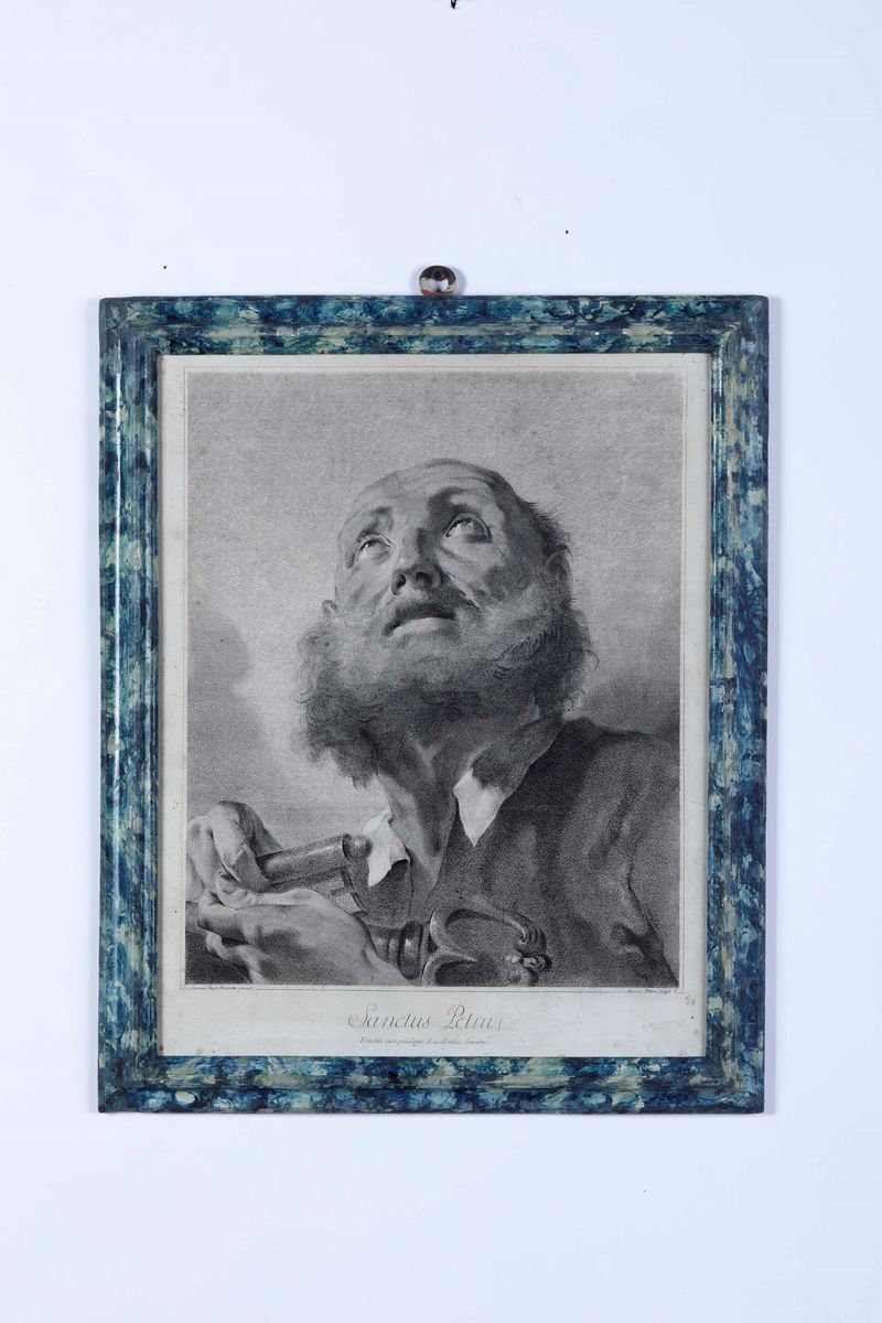 Coppia di incisioni tratte da soggetti di Giovan Battista Piazzetta. Venezia, seconda metà secolo XVIII. Entro belle cornici San Giovanni - San Pietro