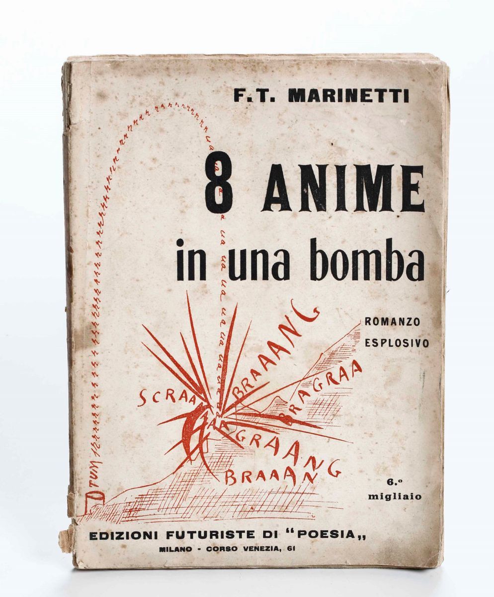 Filippo Tommaso Marinetti 8 Anime e una bomba. Romanzo eplosivo. 6° migliaio. Milano, Edizioni futuriste di "Poesia",1919
