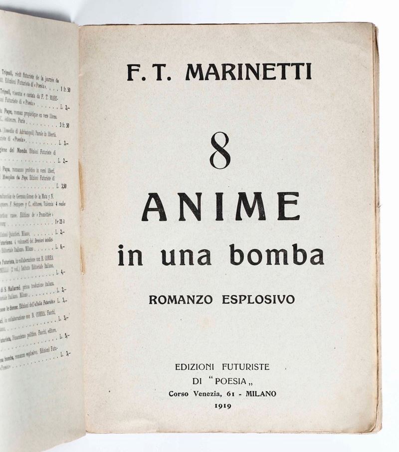 Filippo Tommaso Marinetti 8 Anime e una bomba. Romanzo eplosivo. 6° migliaio. Milano, Edizioni futuriste di "Poesia",1919 [..]