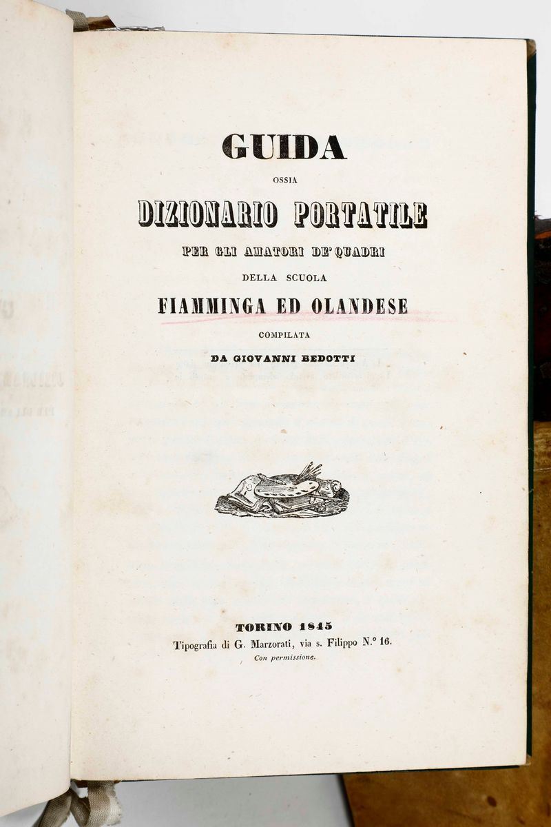 In-4°. cm 21,5x16, legatura coeva in pergamena. Si aggiungono nel lotto: La Richesse de L'Angleterre a Vienne 1771 e Bedotti Giovanni, Guida ossia Dizionario Portatile per gli amatori dei quadri, Torino Marzorati, 1845