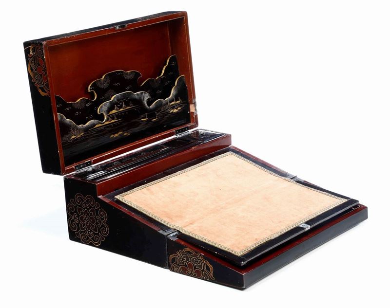 Scrittoio da viaggio in lacca decorata a cineserie. Cina XX secolo