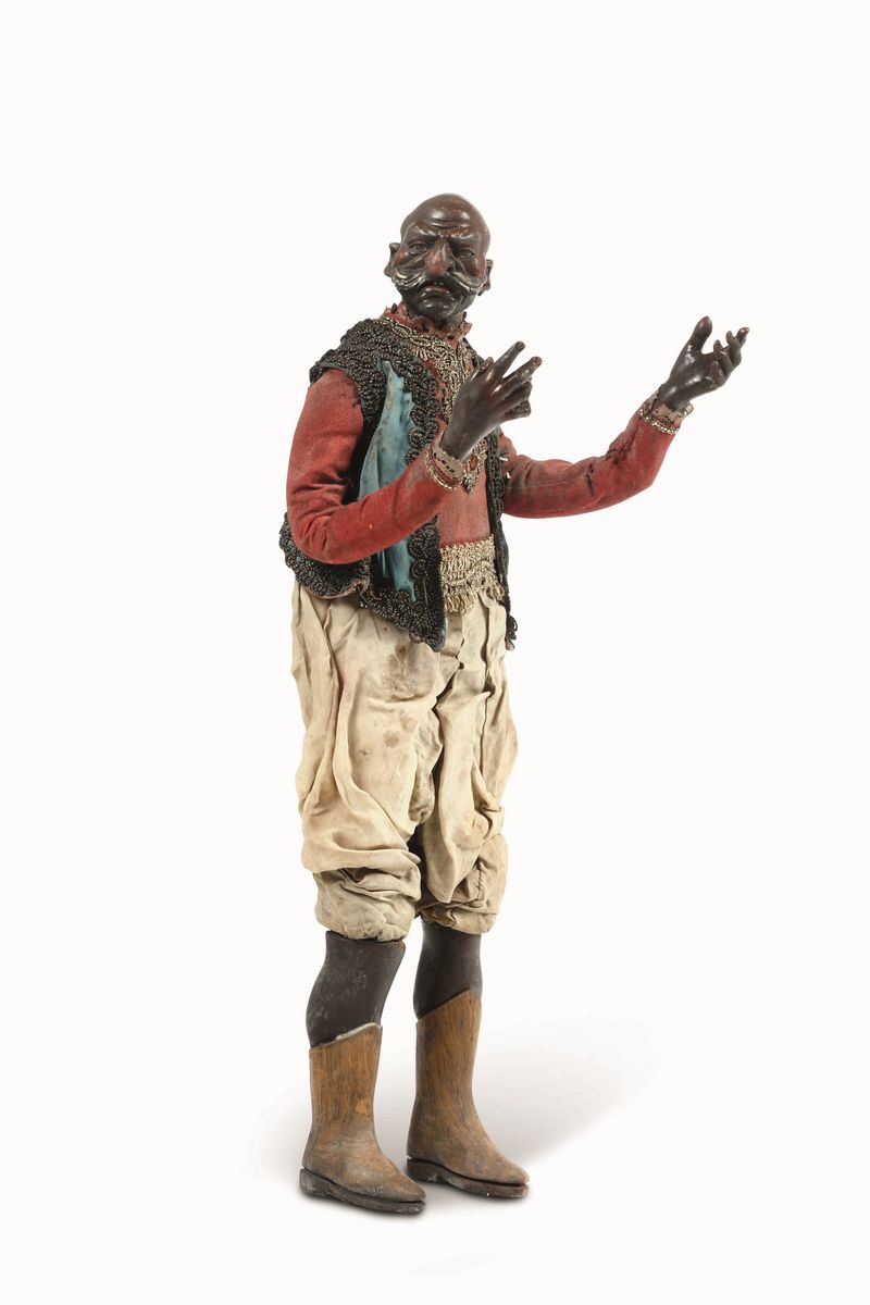 Scultura da presepe raffigurante moro con baffi. Sicilia fine secolo XVIII