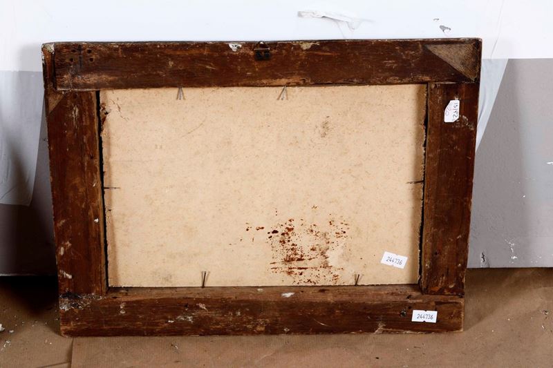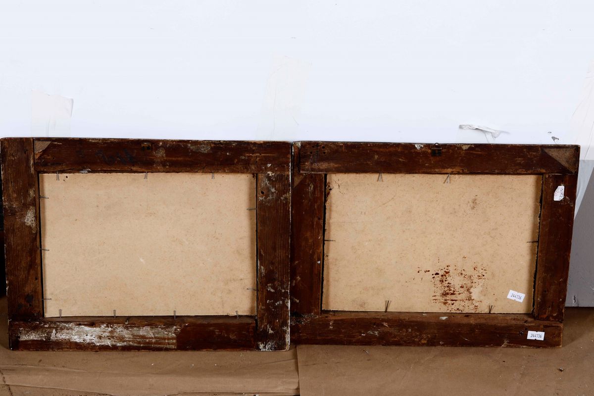coppia di dipinti ad olio su metallo
