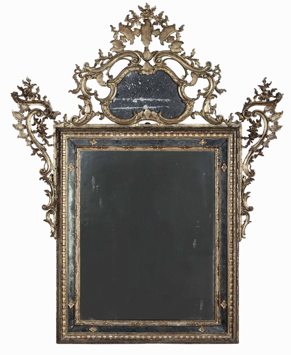 Specchiera in legno intagliato e dorato. Piemonte XVIII secolo