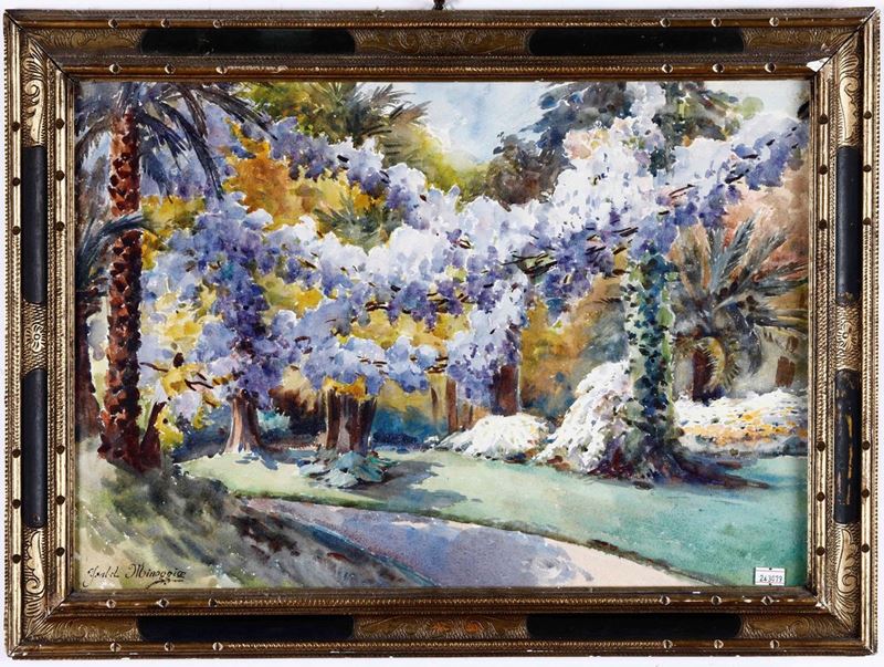 acquerello 1887, cm 34x41, nel lotto altro acquerello di Ysabel Minoggio