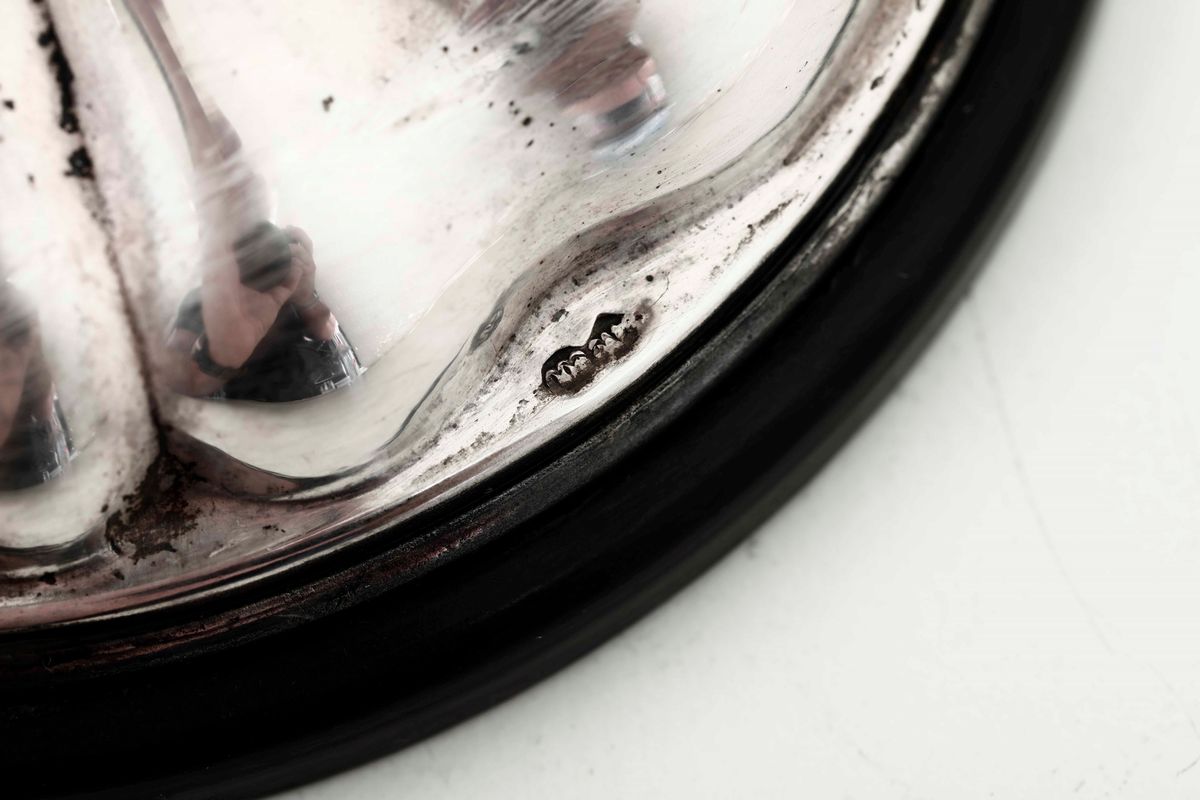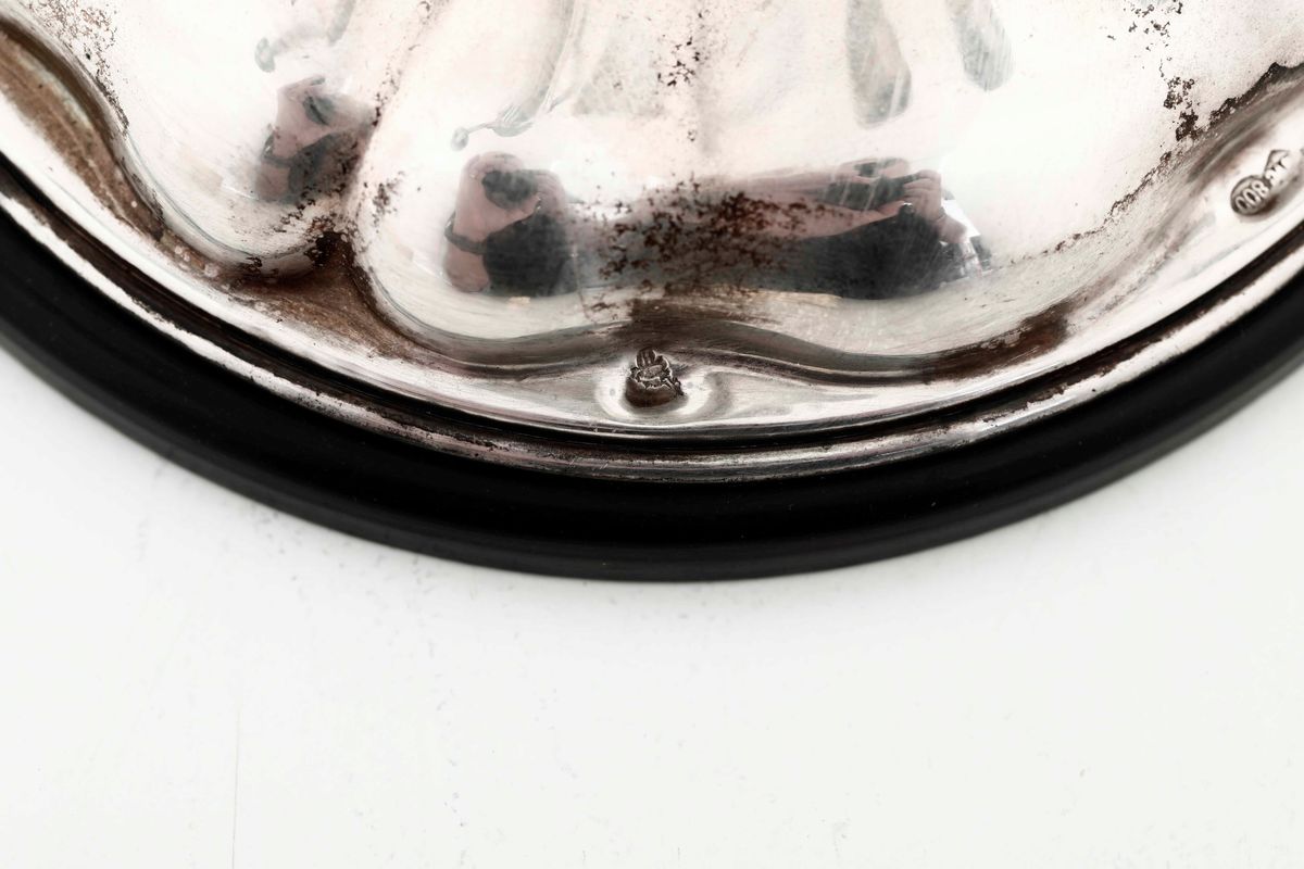 Coppia di candelabri a tre fiamme con base in bachelite. Argenteria italiana del XX secolo. Bollo del fascio littorio in [..]