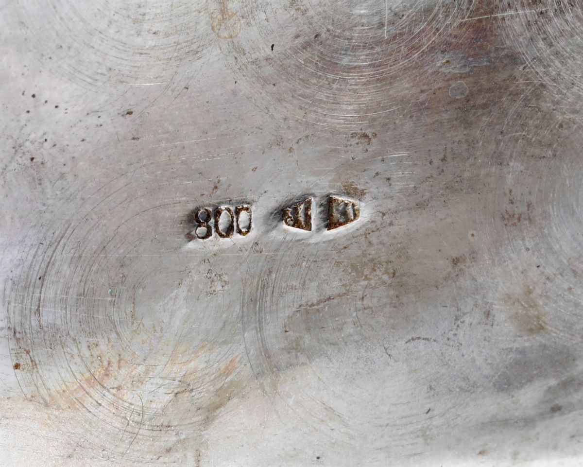 Specchio da toelette in argento e pietre dure. Argenteria artistica italiana della prima metà del XX secolo. Bollo con fascio [..]