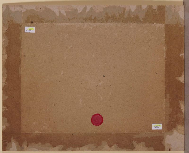 Reca sigillo in ceralacca e iscrizione "Ambrogio Bevilacqua" in basso a sinistra