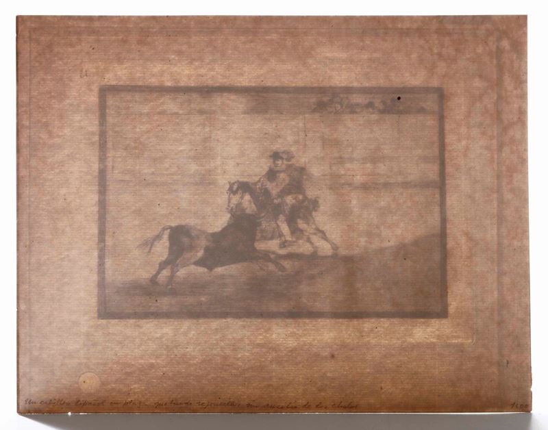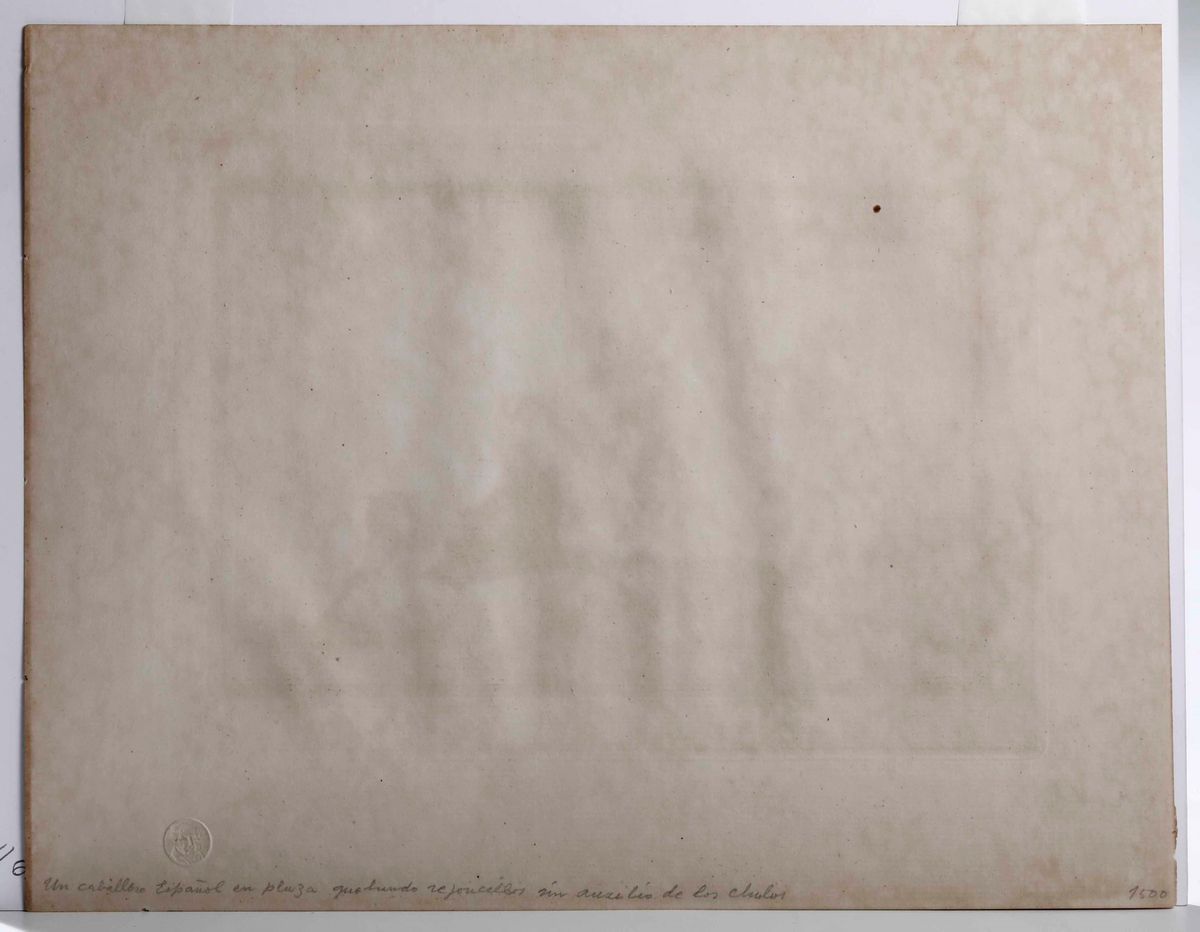 Goya Francisco (Fuendetodos, 1746 – Bordeaux, 1828) Un caballero espanol en plaza quebrando rejoncillos sin auxilio de los chulos