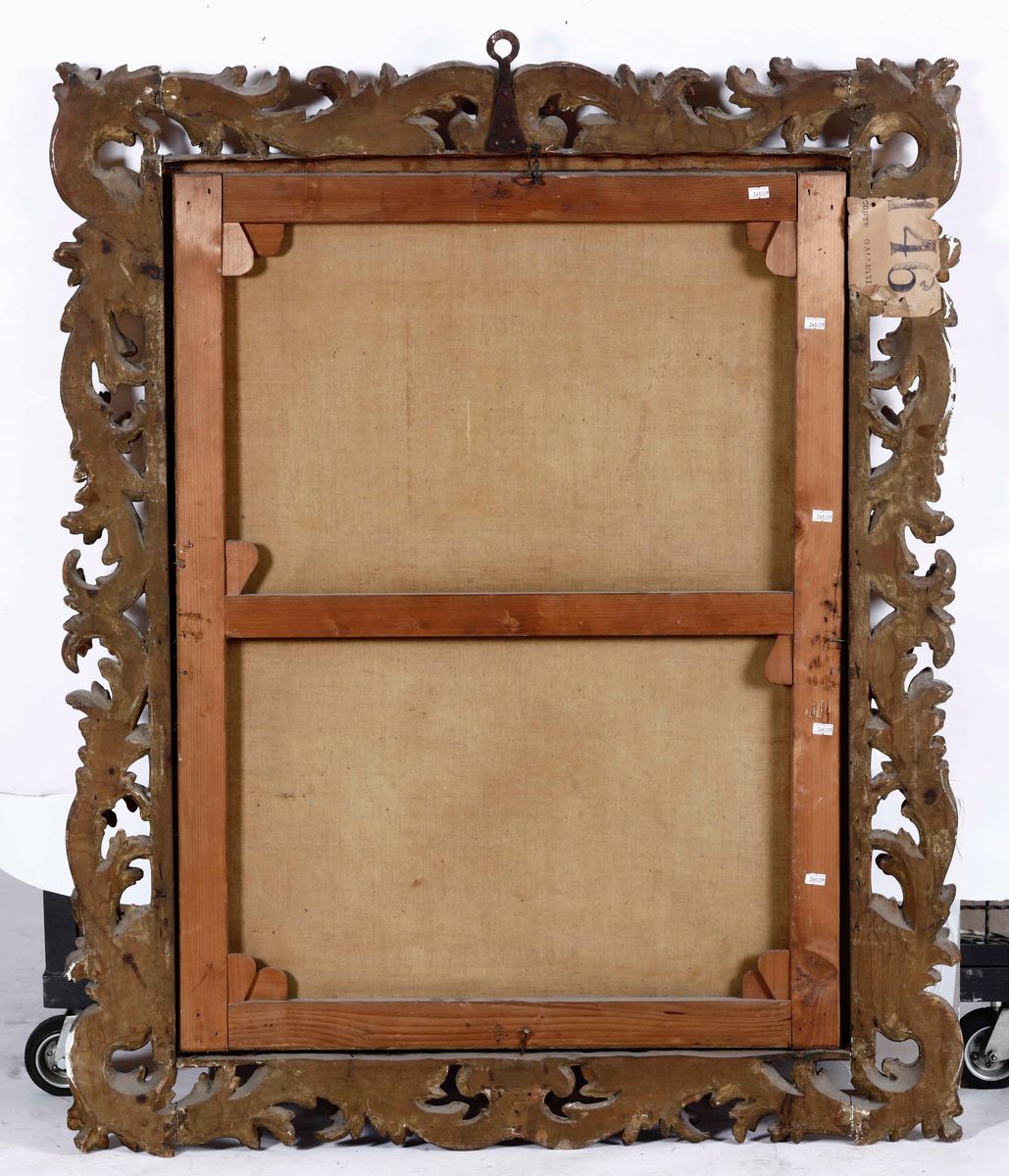 in cornice in legno intagliato e dorato