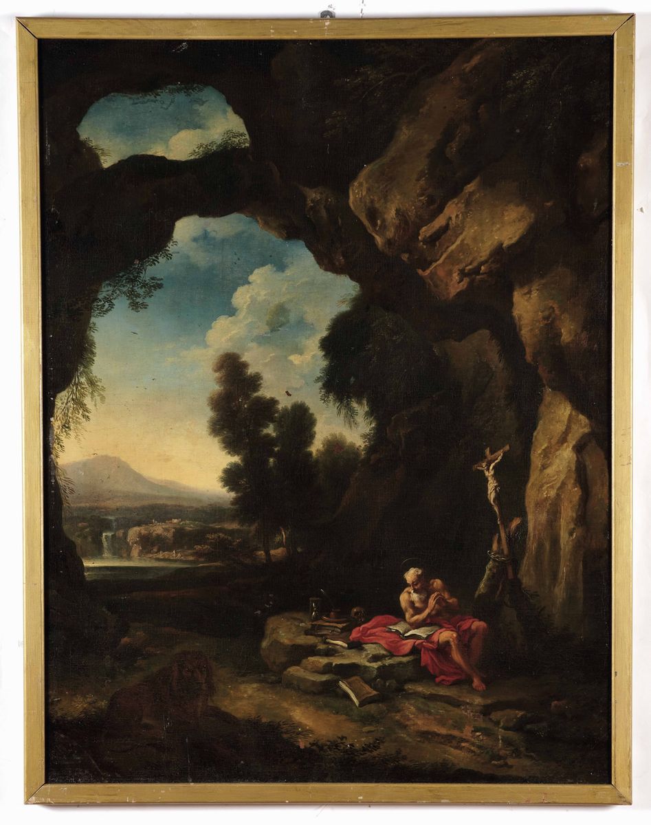 Scuola del XVIII secolo Paesaggio con San Gerolamo penitente