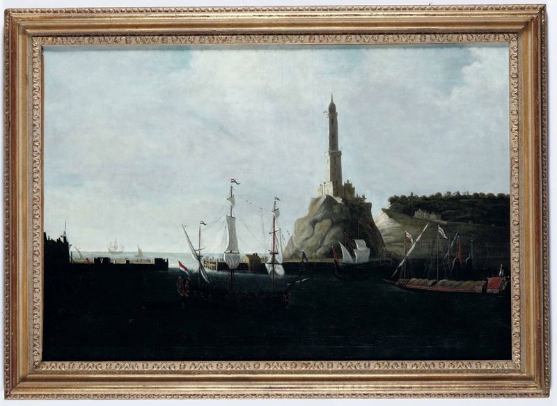 Scuola del XVIII secolo Veduta del porto di Genova