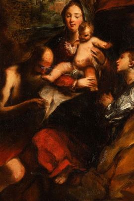 Scuola emiliana del XVIII secolo Madonna con Bambino, San Gerolamo e una santa