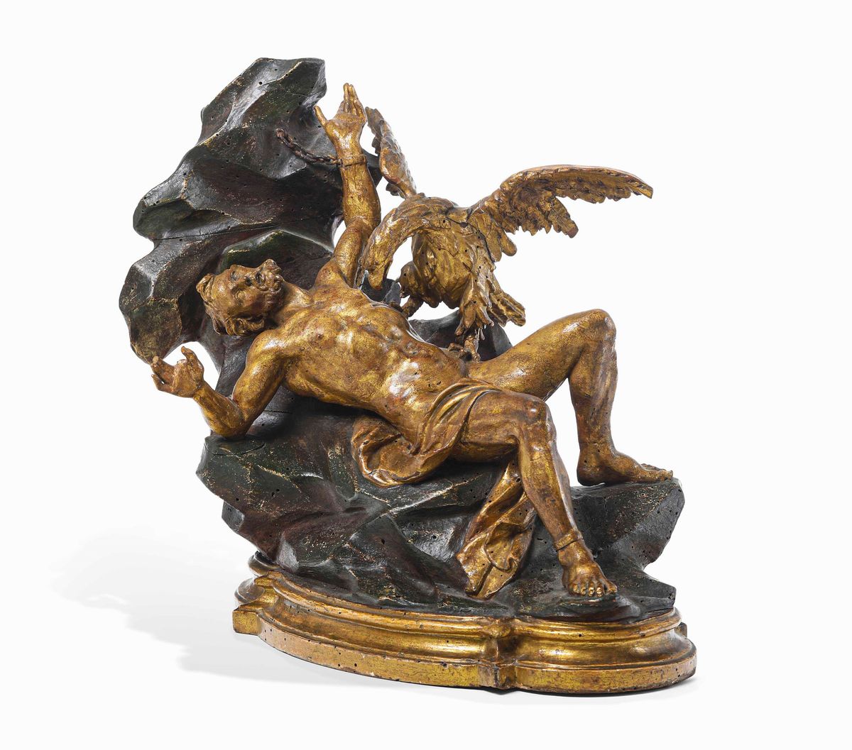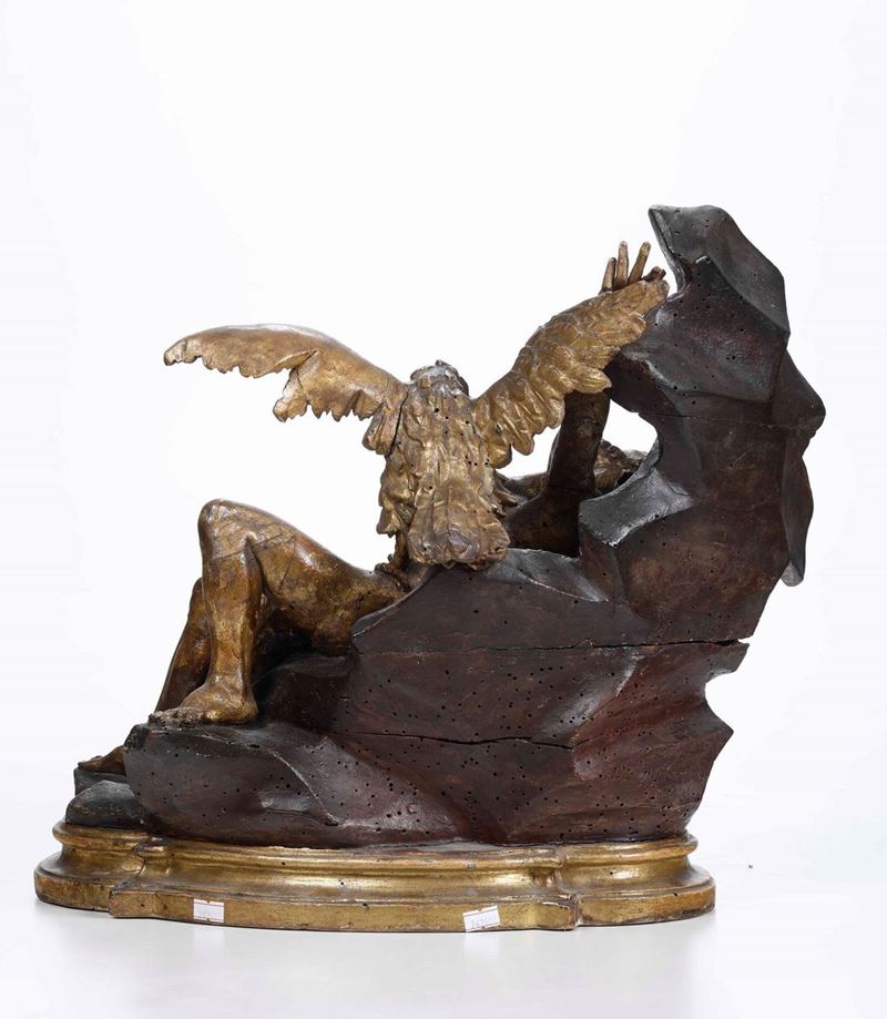 A gilt and painted wood Prometeus, Genoa, late 1600s