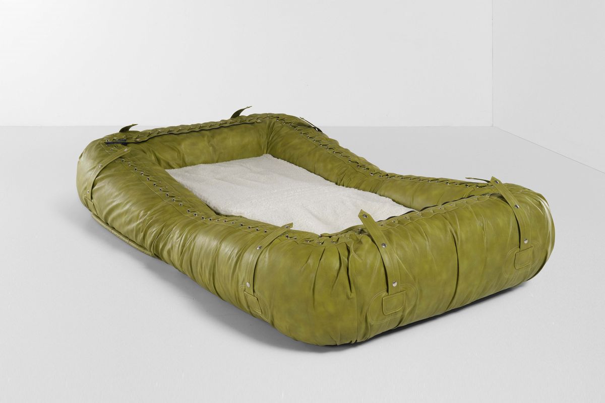 Poltrona letto mod. Anfibio con rivestimenti in pelle.