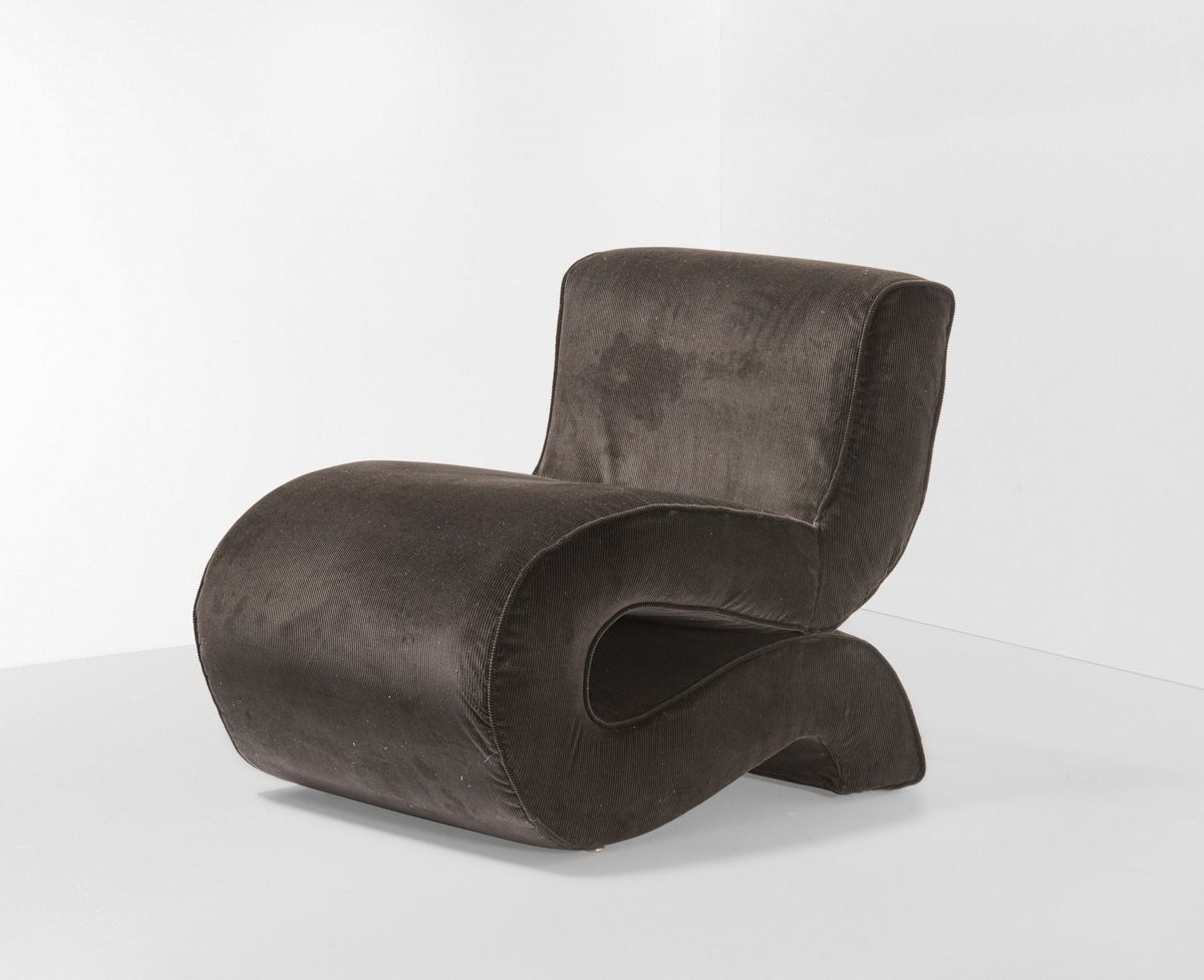 Poltrona mod. Noodle con struttura in metallo e rivestimento in tessuto.