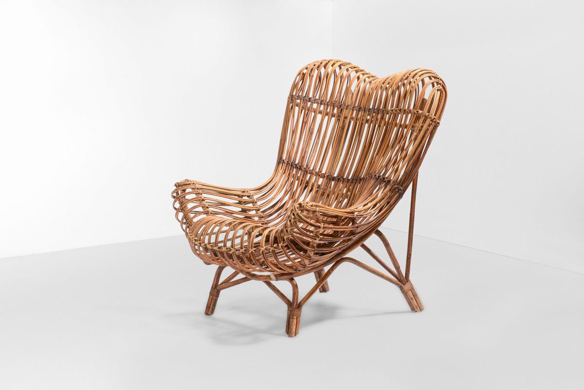Poltrona mod. Gala con struttura in canna d'India e giunco.