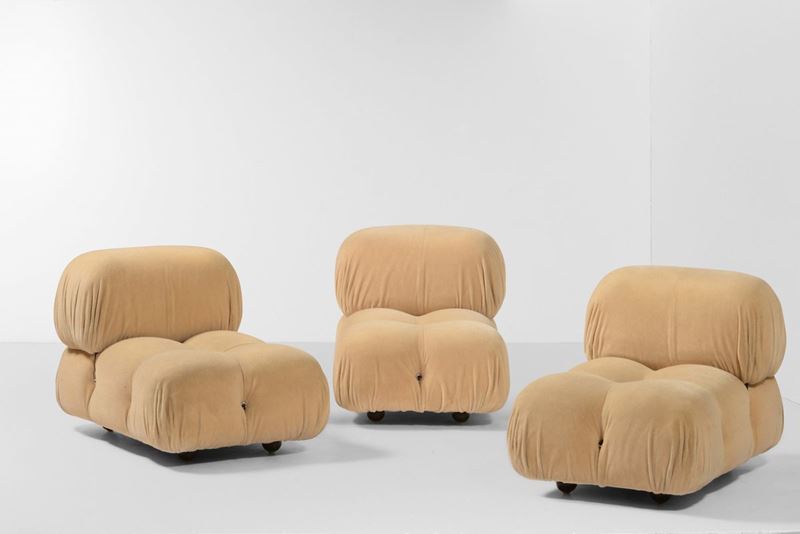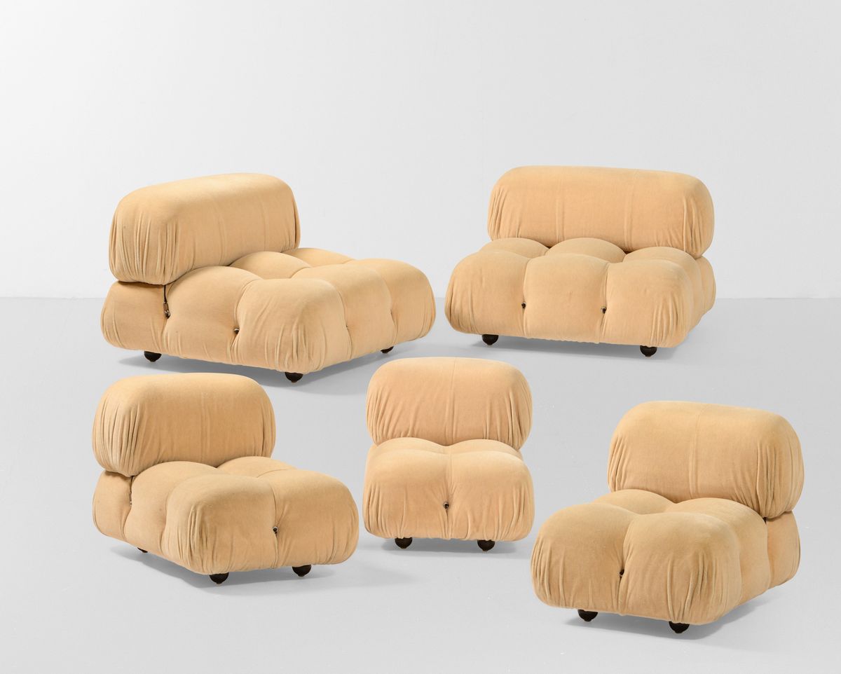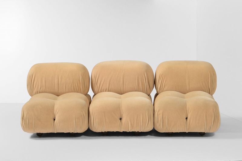 Divano modulare mod. Camaleonda composto da cinque moduli con struttura in legno e rivestimenti in tessuto.