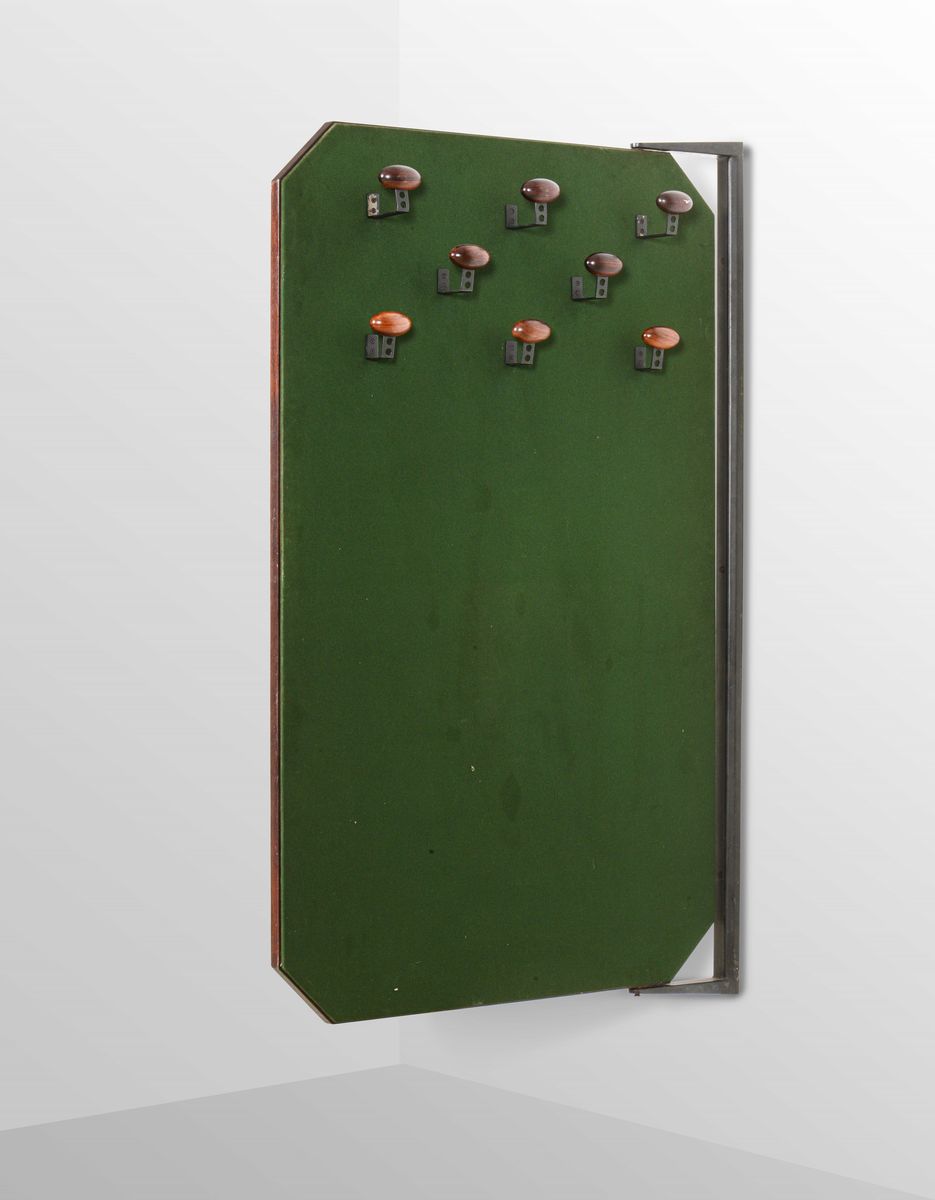 Appendiabiti mod. AT15 a pannello girevole con specchio. Struttura in legno e metallo laccato.